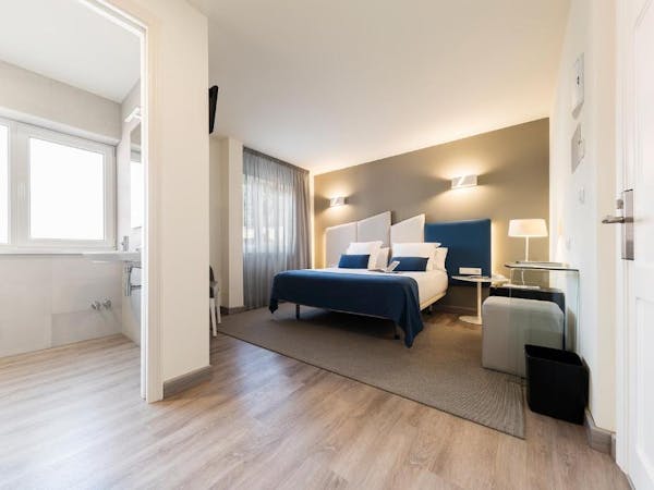 Nuestra habitación doble ofrece un espacio cálido gracias a una moderna decoración. Cuenta con unos 18 metros y cama de matrimonio.